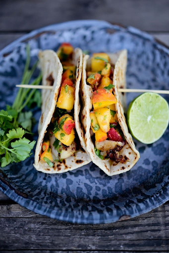 Grilled Chipotle Fish Tacos with Peach Salsa