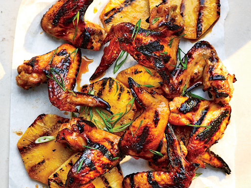Chicken wings are a classic, and always a crowd favorite. This teriyaki-like homemade huli huli sauce and grilled pineapple will take your basic recipe up a notch.